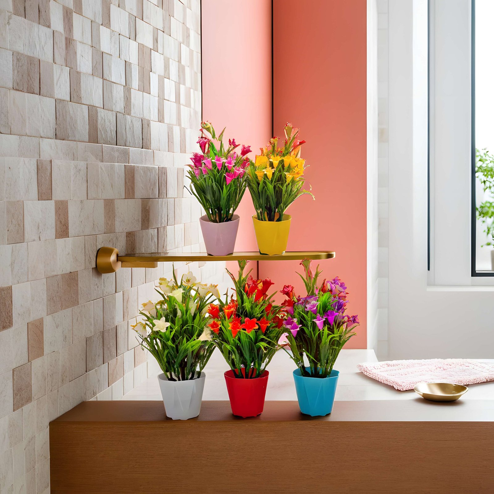 RANI’S CRAFTS Plastic Small Mini Set Of 5 Artificial Plant With Pot Artificial Potted Plants Set Of 5 Home Decor Indoor Small Plants Pot Flowers For Table Desk Decoration (RV-AP4)